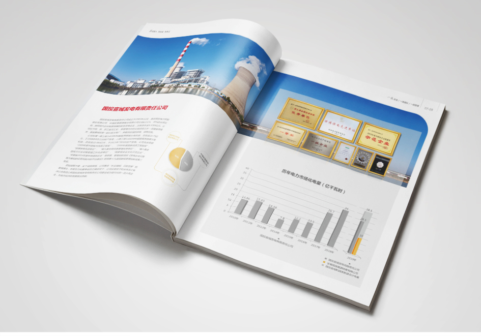 國投宣城發(fā)電有限責(zé)任公司成立于2003年12月,是由國投電力控股股份有限公司、中煤新集能源股份有限公司,按照現(xiàn)代企業(yè)制度組建的新型發(fā)電企業(yè)。是“十一五”安徽省宣城、黃山兩地區(qū)規(guī)劃的唯一大型火電廠。銘陽從前期勾通、畫冊(cè)策劃定位、提交方案,從眾多競(jìng)爭(zhēng)者中得到客戶的認(rèn)可。