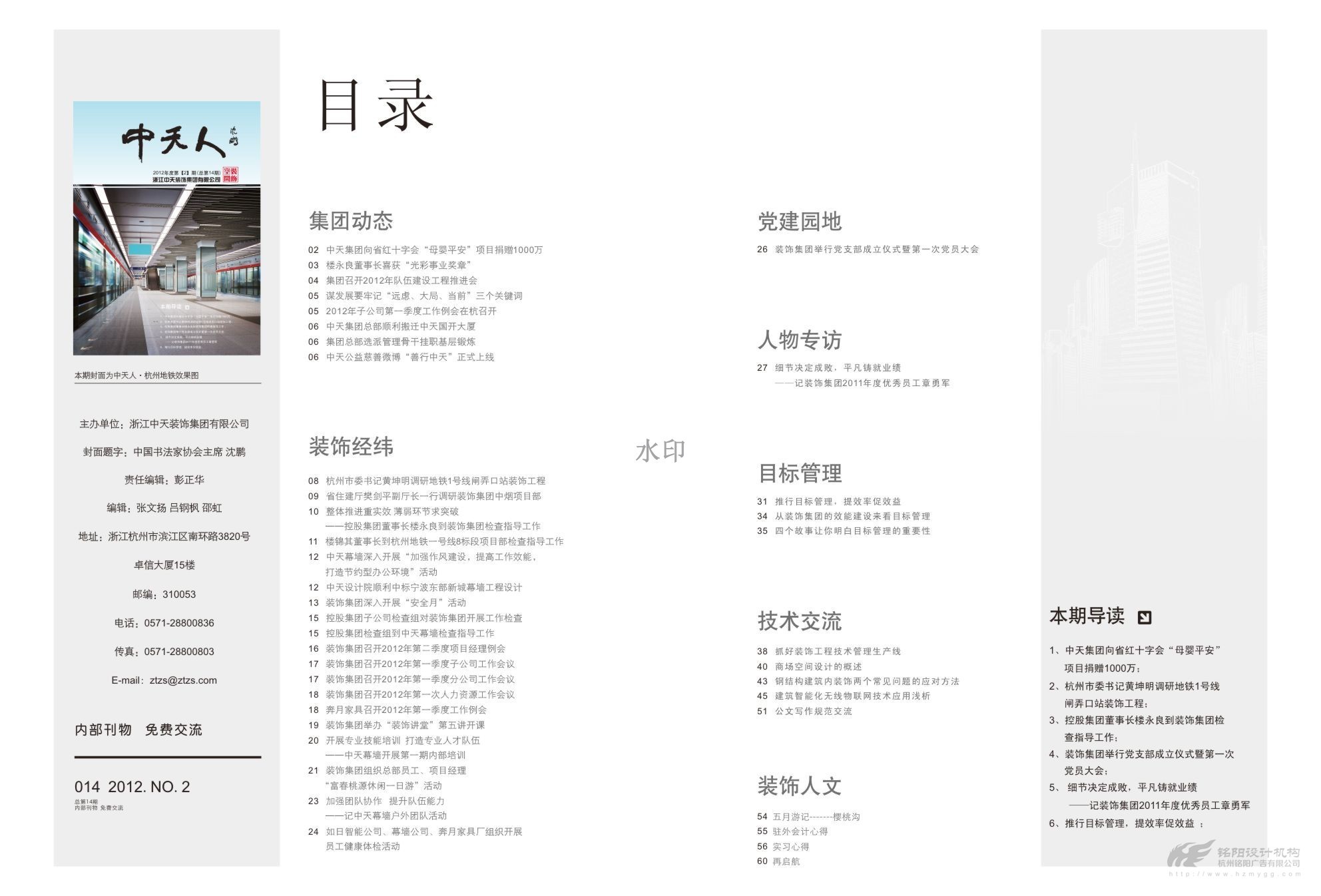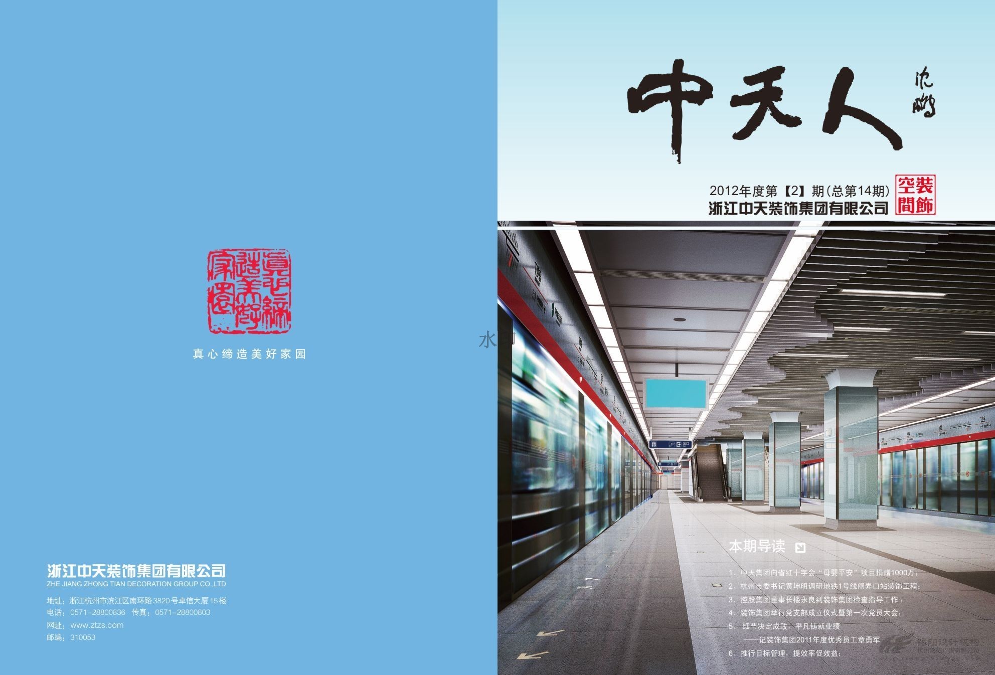 中國企業500強企業,中國民營企業50強企業,中天發展控股集團有限公司(簡稱“中天集團”)是一家以土木建筑、地產置業、電子??化工、投資為主要經營業務的全國大型企業集團。2013年總產值及銷售額超600億元。下轄中天建設集團有限公司,浙江中天房產集團有限公司,中天西北建設投資集團有限公司,浙江中天裝飾集團有限公司,浙江新嘉聯電子股份有限公司,浙江中天氟硅材料有限公司等10多家成員企業。 銘陽與中天集團建立多年伙伴關系,為中天裝飾,中天建設等提供多次平面設計服務,包括月刊、畫冊、說明書、文化形象等。